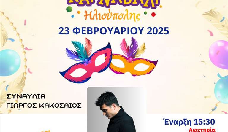 ► Στις 23 Φεβρουαρίου 2025 μετά την Καρναβαλική Παρέλαση θα ακολουθήσει συναυλία με τον ΓΙΩΡΓΟ ΚΑΚΟΣΑΙΟ στην Πλατεία Εθνικής Αντίστασης.
