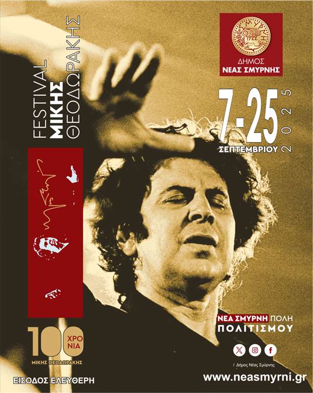 Με τρεις μεγάλες συναυλίες και δύο κινηματογραφικές προβολές ο Δήμος ΝέαΣμύρνης τιμά τα 100 χρόνια από την γέννηση του κορυφαίου συνθέτη Μίκη Θεοδωράκη που έζησε κι έγραψε στην πόλη τα σημαντικότερα έργα του. Το Φεστιβάλ «Μίκης Θεοδωράκης» καθιερώνεται από αυτή την χρονιά και θα πραγματοποιηθεί από 7 – 25 Σεπτεμβρίου.