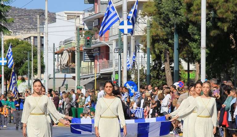 ΩΡΑ 11.00 π.μ.: Έναρξη της παρέλασης από την οδό Παναγή Τσαλδάρη και Ραβινέ, διέλευσή της προ των επισήμων (στο ύψος της πλατείας Δημοκρατίας) και κατάληξή της στη διασταύρωση της οδού Π. Τσαλδάρη με την οδό Αιμ. Βεάκη, όπου και θα καταλήγουν οι παρελαύνοντες σχηματισμοί.