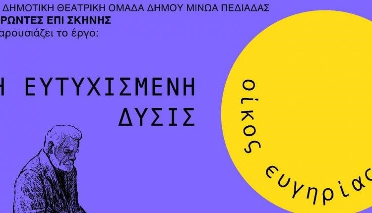 Η Δημοτική Θεατρική Ομάδα του Δήμου Μινώα Πεδιάδας συνεχίζει την επιτυχημένη πορεία της και παρουσιάζει φέτος τον «Οίκο ευγηρίας» του Μανώλη Κορρέ, σε σκηνοθεσία Ευαγγελίας Μαρκοπούλου. Πρόκειται για μία παράσταση που δεν πρέπει να χάσει κανείς.