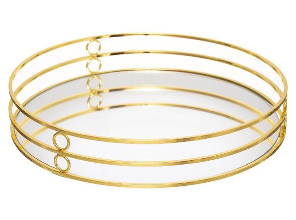 Δίσκος Μεταλλικός Με Καθρέφτη Στρογγυλός Χρυσός 30cm Atmosphera