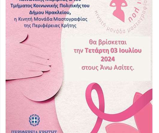 Δωρεάν προληπτικές εξετάσεις με την Κινητή Μονάδα Μαστογράφου στις Άνω Ασίτες σε συνεργασία Δήμου Ηρακλείου – Περιφέρειας Κρήτης