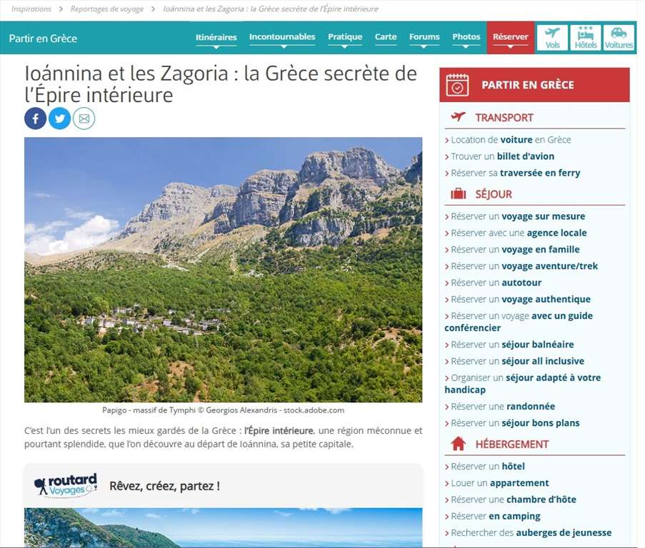 Η ‘Ήπειρος και τα Μετέωρα έχουν την τιμητική τους στον κορυφαίο γαλλικό ταξιδιωτικό οδηγό Routard κατόπιν ταξιδιού εξοικείωσης που οργάνωσε η Υπηρεσία Εξωτερικού ΕΟΤ Γαλλίας σε συνεργασία με τις Περιφέρειες Ηπείρου και Θεσσαλίας