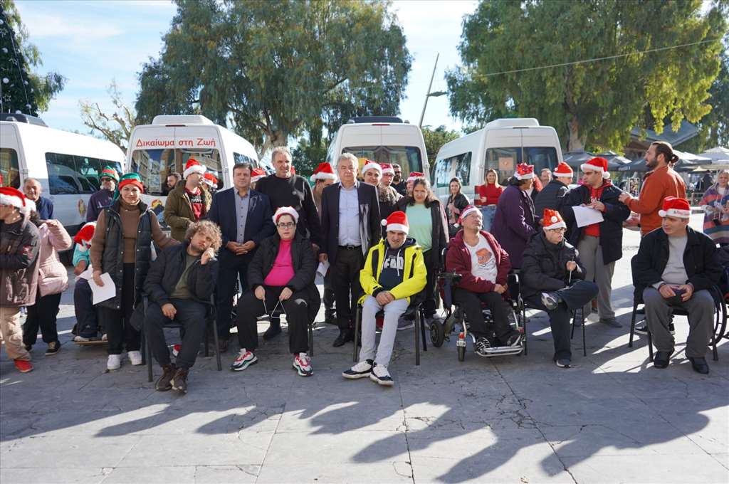 Τα Χριστουγεννιάτικα κάλαντα έψαλαν στον Περιφερειάρχη Σταύρο Αρναουτάκη και στον Αντιπεριφερειάρχη Ηρακλείου Νίκο Συριγωνάκη τα παιδιά και τα άτομα με αναπηρία του σωματείου γονέων, κηδεμόνων και φίλων ατόμων με αναπηρία «Δικαίωμα στη Ζωή» που συνοδεύονταν από τον Πρόεδρο του σωματείου Παύλο Σημαντηράκη.