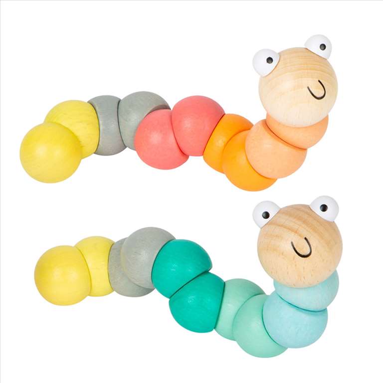 Δύο σκουληκαντέρες σε μοντέρνες παστέλ αποχρώσεις έτοιμες για δαγκώματα, τραβήγματα και πολύ σάλιωμα! Χάρη στο δυνατό λάστιχο που ενώνει τα κομμάτια τους είναι ικανές να παίρνουν όποια μορφή θέλετε! Δεν θα μπορούν να τις αφήσουν από τα χέρια τους ουτε στον ύπνο! Κατάλληλο για παιδιά από 12 μηνών. Διαστάσεις περίπου 17 x 3 x 3 εκ