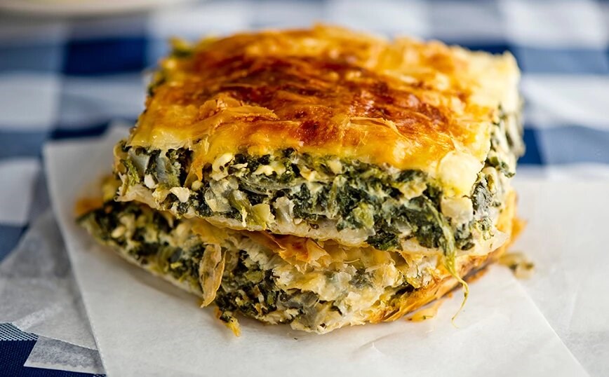 Προσθέστε το σπανάκι, τη φέτα και το αλεύρι και ανακατέψτε καλά.