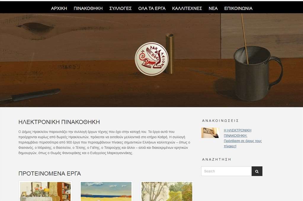 Μετά από σκληρή και μεθοδική δουλειά πολλών μηνών, η ψηφιακή πινακοθήκη του Δήμου Ηρακλείου είναι πλέον γεγονός: ο Δήμος Ηρακλείου σε συνεργασία με το Ινστιτούτο Πληροφορικής του ΙΤΕ και την ιστορικό τέχνης Ντενίζ –Χλόη Αλεβίζου κατέγραψε και ψηφιοποίησε την επί δεκαετίες εγκαταλελειμμένη και διεσπαρμένη συλλογή έργων τέχνης της ιδιοκτησίας του. Τα αποτελέσματα αυτής της δουλειάς μπορούν πλέον να τα δουν όλοι, στην ιστοσελίδα www.heraklionartgallery.gr.