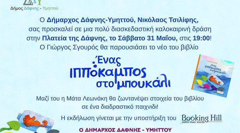 Ο Δήμαρχος Δάφνης-Υμηττού, Νικόλαος Τσιλίφης, σας προσκαλεί σε μια καλοκαιρινή και πολύχρωμη γιορτή με αφορμή την παρουσίαση του παραμυθιού του Γιώργου Σγουρού, «Ένας ιππόκαμπος στο μπουκάλι».
