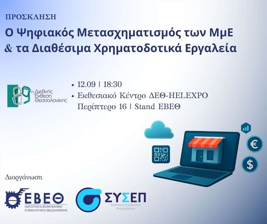Εκδήλωση για τον ψηφιακό μετασχηματισμό των μικρομεσαίων επιχειρήσεων στις 12 Σεπτεμβρίου στο Περίπτερο του ΕΒΕΘ στην 89η ΔΕΘ