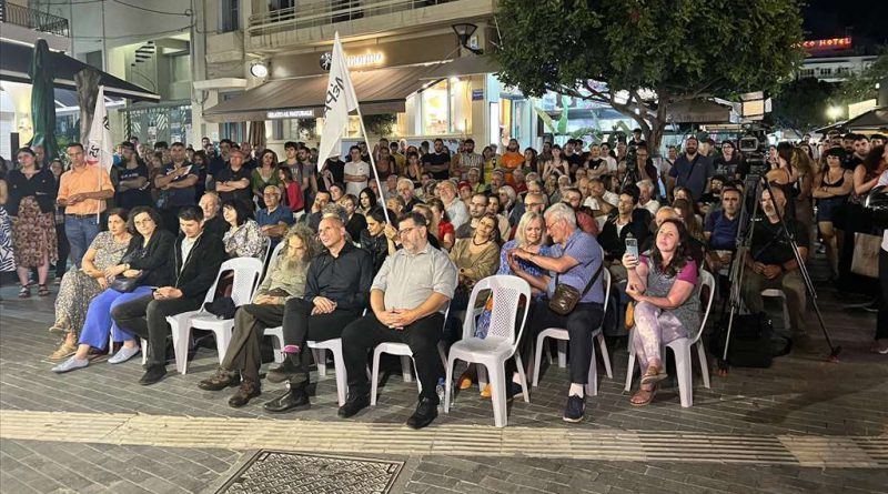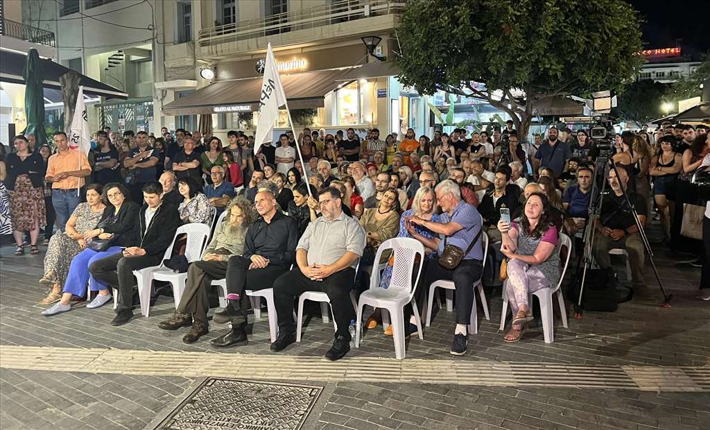 Στο Ηράκλειο της Κρήτης πραγματοποιήθηκε προεκλογική εκδήλωση του ΜέΡΑ25 – Συμμαχία για τη Ρήξη παρουσία του Επικεφαλής, Γιάνη Βαρουφάκη και του υποψηφίου στην τελευταία θέση του ψηφοδελτίου Επικρατείας, Ψαραντώνη.