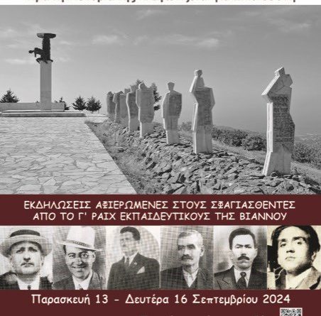 ΟΡΓΑΝΩΣΗ ΕΚΔΗΛΩΣΕΩΝ: Περιφέρεια Κρήτης, Δήμος Βιάννου και Ένωση Θυμάτων Ολοκαυτώματος Δήμου Βιάννου.
