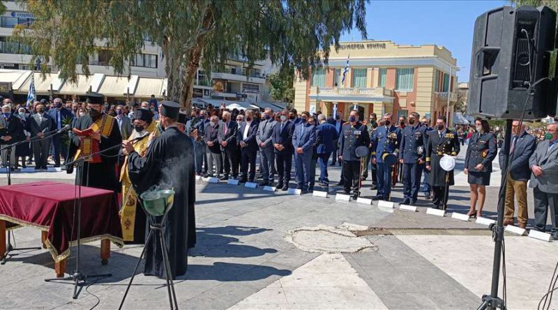 Επιμνημόσυνη δέηση και κατάθεση στεφάνων-προσκύνημα στο Μνημείο του Άγνωστου Στρατιώτη στο Ηράκλειο πραγματοποιήθηκε σήμερα στο πλαίσιο των εορταστικών εκδηλώσεων για την εθνική επέτειο της 25ης Μαρτίου 1821, που οργανώνει η Περιφερειακή Ενότητα Ηρακλείου. Την επιμνημόσυνη δέηση τέλεσε ο Σεβασμιότατος Αρχιεπίσκοπος Κρήτης κ.κ. Ευγένιος, ενώ στεφάνια κατέθεσαν ο εκπρόσωπος της Κυβέρνησης Υφυπουργός Πολιτισμού και Αθλητισμού Λευτέρης Αυγενάκης, ο βουλευτής Γιώργος Λογιάδης και ο ευρωβουλευτής Μανόλης Κεφαλογιάννης, ο Περιφερειάρχης Κρήτης Σταύρος Αρναουτάκης, ο Δήμαρχος Ηρακλείου Βασίλης Λαμπρινός, ο Ανώτερος Διοικητής Φρουράς Ηρακλείου, ο Πρόεδρος της ΠΕΔ Κρήτης, Πρυτανικές Αρχές, φορείς, εκπρόσωποι κοινοβουλευτικών κομμάτων, αποστράτων, Αναπήρων Θυμάτων Πολέμου κ.α.