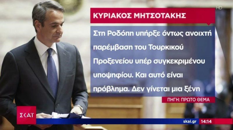 Ο Κυριάκος Μητσοτάκης αναφέρει ότι «στη Ροδόπη υπήρξε όντως ανοιχτή παρέμβαση του τουρκικού προξενείου υπέρ συγκεκριμένου υποψηφίου. Και αυτό είναι πρόβλημα».
