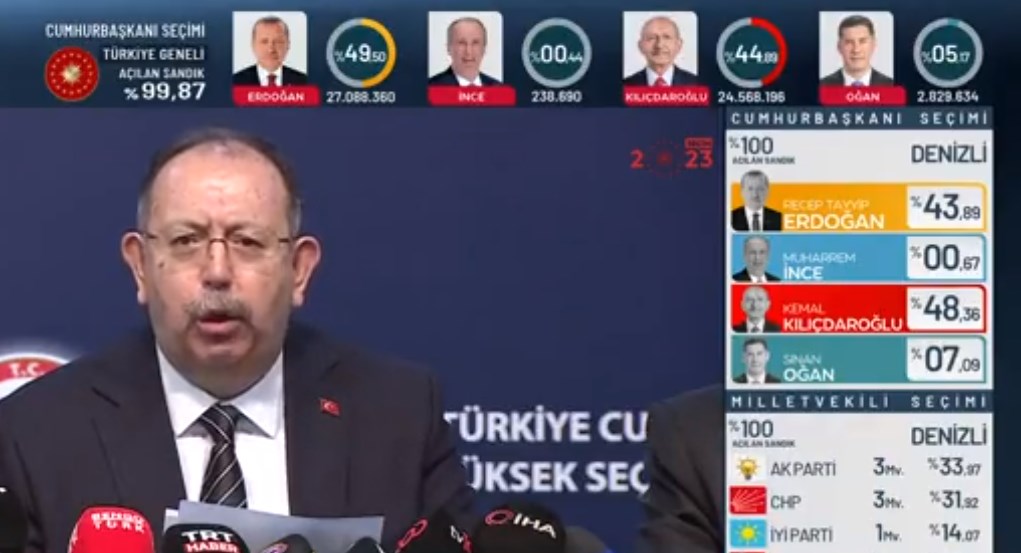 Ρετζέπ Ταγίπ Ερντογάν και Κεμάλ Κιλιτσντάρογλου θα διεκδικήσουν την προεδρία της Τουρκίας στο δεύτερο γύρο των εκλογών, όπως ανακοίνωσε και επίσημα ο πρόεδρος του Ανώτατου Εκλογικού Συμβουλίου.
