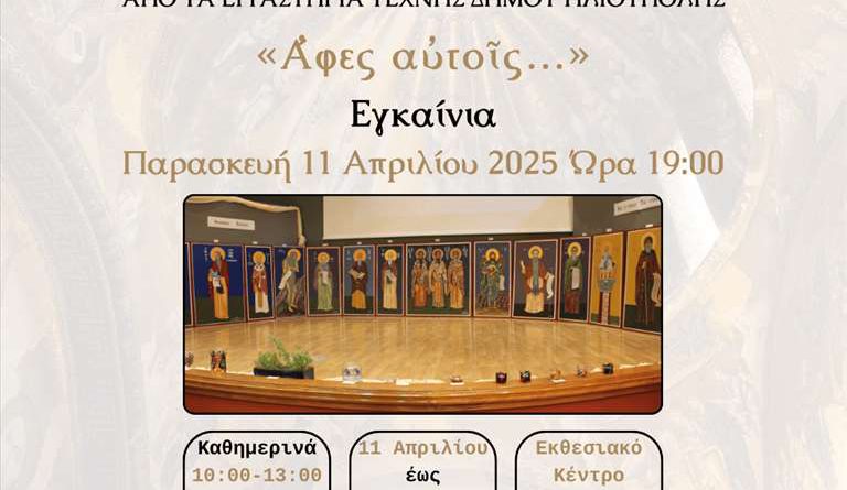 Με αφορμή την αναμονή του θείου δράματος, το εργαστήρι Αγιογραφίας του Δήμου Ηλιούπολης, εγκαινιάζει την Ομαδική Έκθεση Αποφοίτων με τίτλο «Ἄφες αὐτοῖς…», την Παρασκευή 11 Απριλίου 2025, στις 19:00 μ.μ., στο Εκθεσιακό Κέντρο Ηλιούπολης.