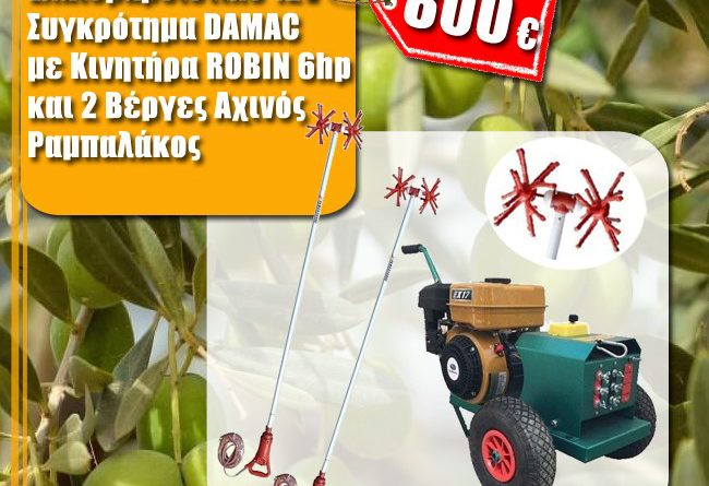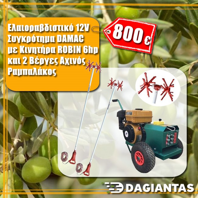 Ελαιοραβδιστικό – Γεννήτρια 12V Συγκρότημα DAMAC με Κινητήρα ROBIN 6hp και 2 Βέργες Αχινός Ραμπαλάκος