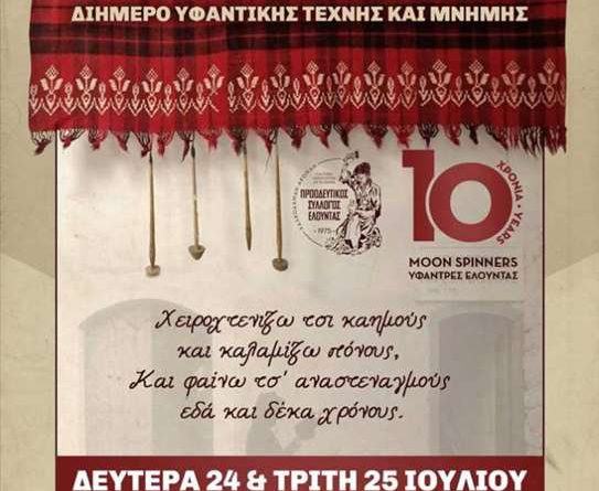 Διήμερη εκδήλωση υφαντικής τέχνης και μνήμης τη Δευτέρα 24 και την Τρίτη 25 Ιουλίου.