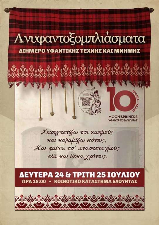 Διήμερη εκδήλωση υφαντικής τέχνης και μνήμης τη Δευτέρα 24 και την Τρίτη 25 Ιουλίου.