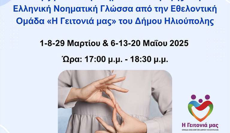 Έναρξη κύκλου μαθημάτων εισαγωγής στην Ελληνική Νοηματική Γλώσσα (ΕΝΓ) από την Εθελοντική Ομάδα «Η Γειτονιά μας» του Δήμου Ηλιούπολης