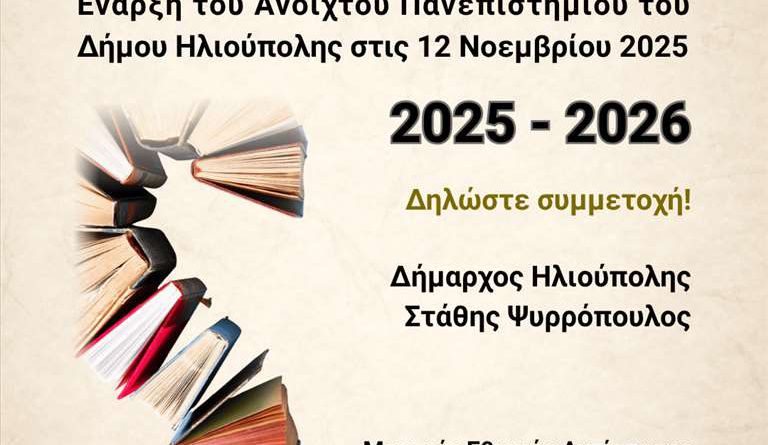 Έναρξη του Ανοιχτού Πανεπιστημίου του Δήμου Ηλιούπολης στις 12 Νοεμβρίου 2025
