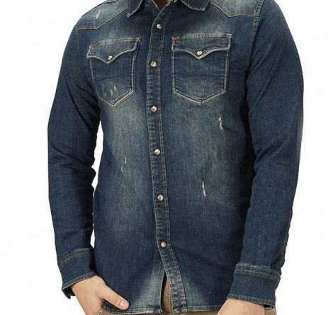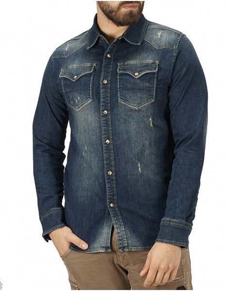 Μακρυμάνικο, τζιν πουκάμισο της Endeson (G-111) σε denim χρώμα με τσέπες στο στήθος. Έχει στενή γραμμή και ελαστικό ύφασμα.