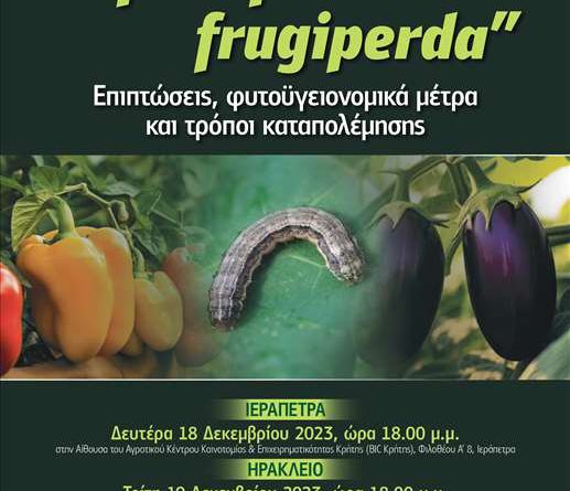 Η Περιφέρεια Κρήτης διοργανώνει ενημερωτικές εσπερίδες με θέμα : «Πρώτη εμφάνιση του, για την πρώτη εμφάνιση του εντόμου – εχθρού καραντίνας «Spodoptera fruigipedra» στην Κρήτη, για την αποφυγή δυσμενών επιπτώσεων.