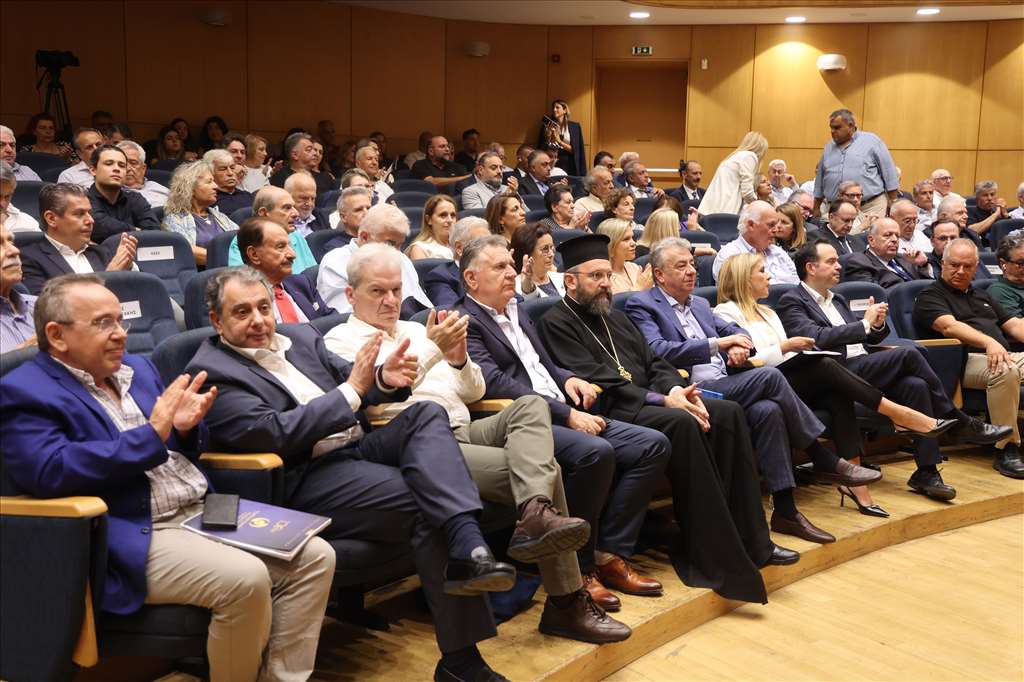 Στην κατάμεστη αίθουσα ΚΑΣΤΕΛΛΑΚΗ εκπρόσωποι της Εκκλησίας, της Πολιτείας, της Τοπικής Αυτοδιοίκησης, των επιμελητηρίων της χώρας, των παραγωγικών φορέων και των εργαζομένων τίμησαν με την παρουσία τους τη μεγάλη γιορτή.