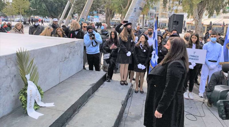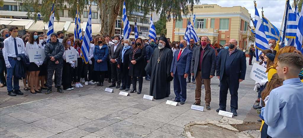 Επιμνημόσυνη δέηση και κατάθεση στεφάνων-προσκύνημα από μαθητές στο Μνημείο του Άγνωστου Στρατιώτη πραγματοποιήθηκε σήμερα στο πλαίσιο των εορταστικών εκδηλώσεων για την εθνική επέτειο της 25ης Μαρτίου 1821, που οργανώνει η Περιφερειακή Ενότητα Ηρακλείου.