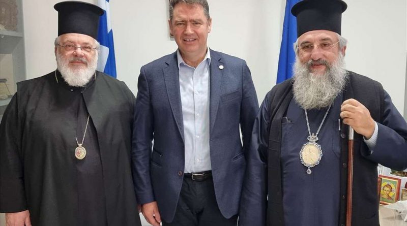 Τον Αρχιεπίσκοπο Κρήτης κ. Ευγένιο και τον Μητροπολίτη Διδυμοτείχου κ. Δαμασκηνό υποδέχτηκε ο Δήμαρχος Χερσονήσου Γιάννης Σέγκος.