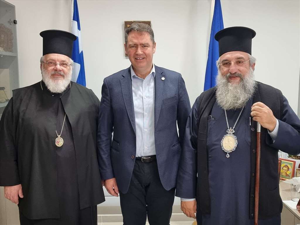 Τον Αρχιεπίσκοπο Κρήτης κ. Ευγένιο και τον Μητροπολίτη Διδυμοτείχου κ. Δαμασκηνό υποδέχτηκε ο Δήμαρχος Χερσονήσου Γιάννης Σέγκος.