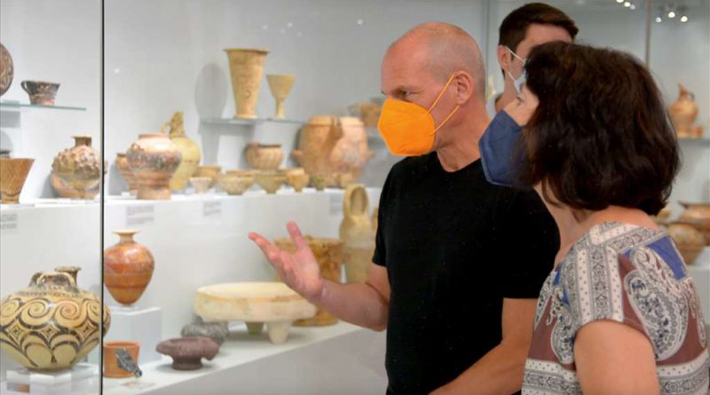 Τον Γραμματέα του ΜέΡΑ25 υποδέχθηκε η διευθύντρια του Μουσείου η οποία και ξενάγησε τον Γιάνη Βαρουφάκη στο χώρο του Μουσείου με τα σπουδαία αρχαιολογικά εκθέματα.