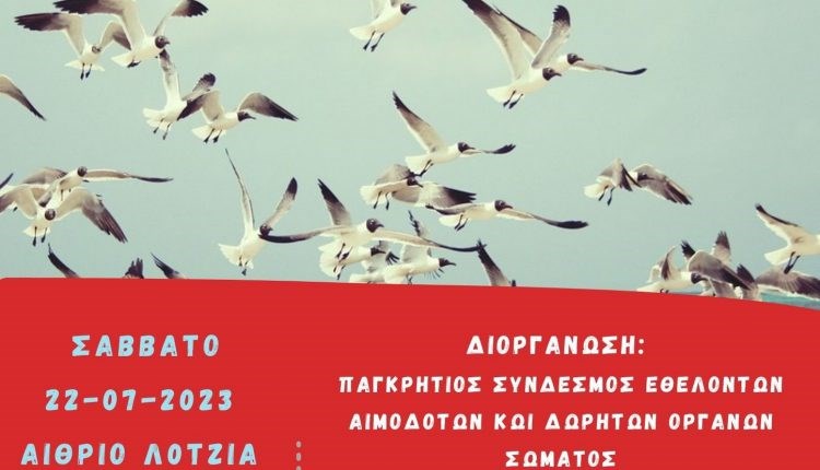 Εθελοντική αιμοδοσία θα πραγματοποιηθεί το Σάββατο 22/07/2023 στο κέντρο της πόλης του Ηρακλείου και συγκεκριμένα στο αίθριο της Λότζια από τις 9:30 έως τις 14:00.