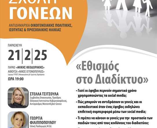 «Εθισμός στο Διαδίκτυο» Διάλεξη της Σχολής Γονέων του Δήμου Βριλησσίων