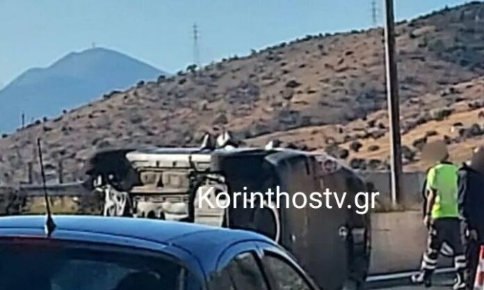 Εθνική Οδός Αθηνών – Κορίνθου: Τούμπαρε αυτοκίνητο μετά τα διόδια της Ελευσίνας (pics)