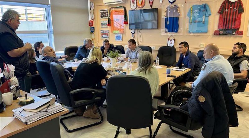 Με τη συμμετοχή όλων των εμπλεκομένων φορέων του Δήμου Ηρακλείου (Αθλητισμού, Τεχνικής Υπηρεσίας, Πολιτικής Προστασίας και Ανάπτυξη Αθλητισμού Ηρακλείου ΑΕ ΟΤΑ), εκπροσώπων της Περιφέρειας Κρήτης και της ΕΛΑΣ, καθώς και μηχανικών εναεριτών, πραγματοποιήθηκε η σύσκεψη για την αποκατάσταση της ζημιάς του στεγάστρου και της επαναφορά της ομαλής λειτουργίας του Παγκρητίου Σταδίου.