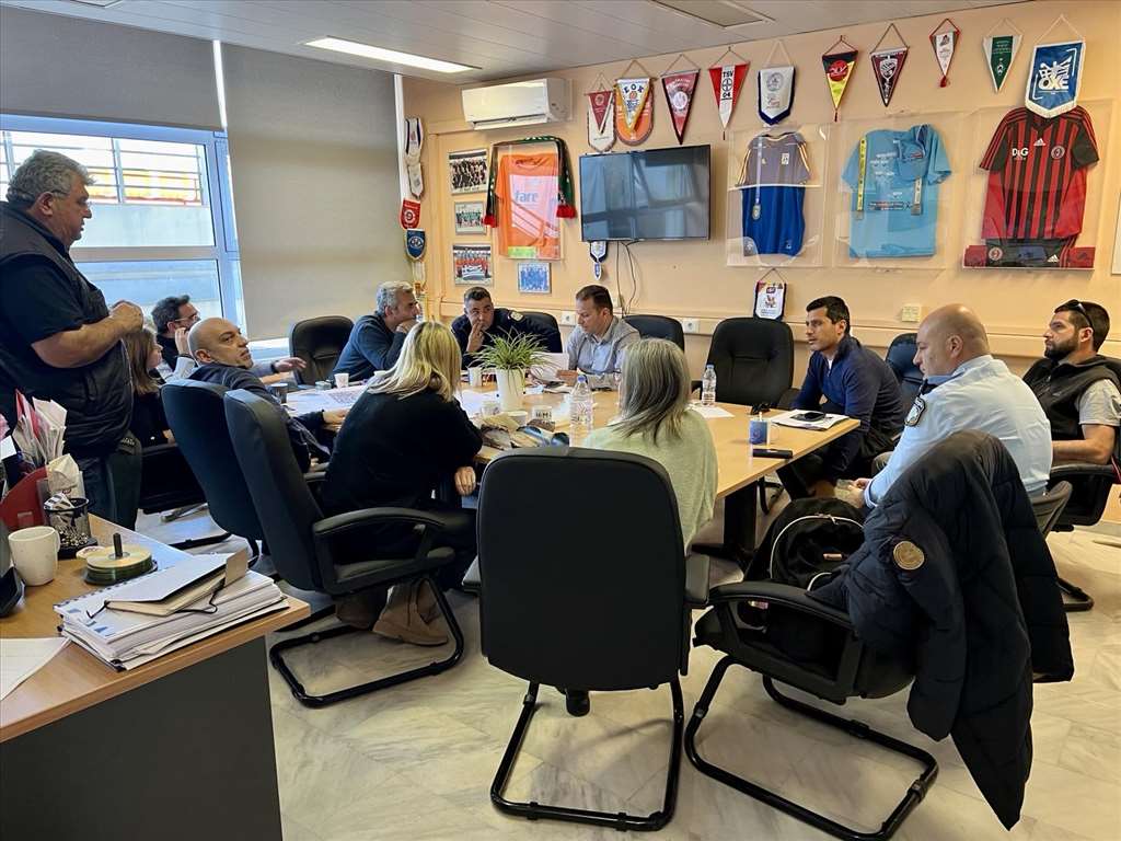 Με τη συμμετοχή όλων των εμπλεκομένων φορέων του Δήμου Ηρακλείου (Αθλητισμού, Τεχνικής Υπηρεσίας, Πολιτικής Προστασίας και Ανάπτυξη Αθλητισμού Ηρακλείου ΑΕ ΟΤΑ), εκπροσώπων της Περιφέρειας Κρήτης και της ΕΛΑΣ, καθώς και μηχανικών εναεριτών, πραγματοποιήθηκε η σύσκεψη για την αποκατάσταση της ζημιάς του στεγάστρου και της επαναφορά της ομαλής λειτουργίας του Παγκρητίου Σταδίου.