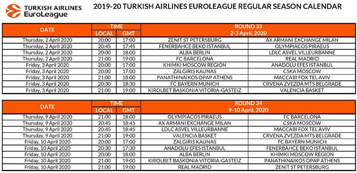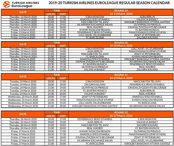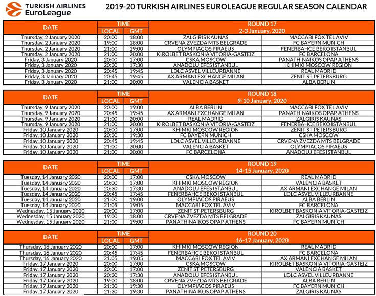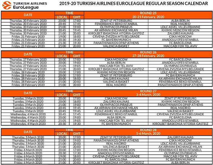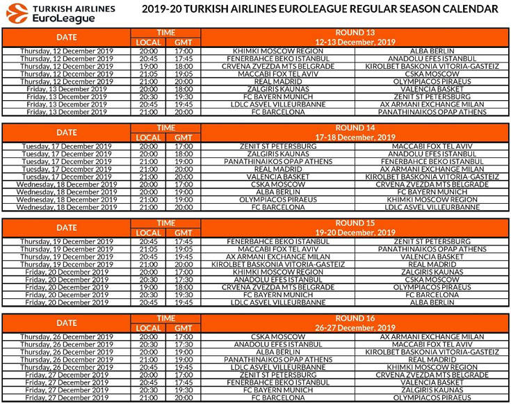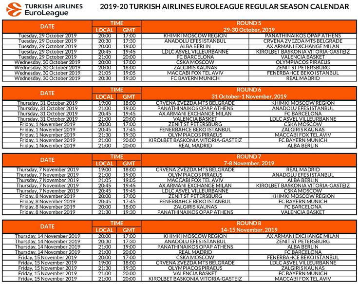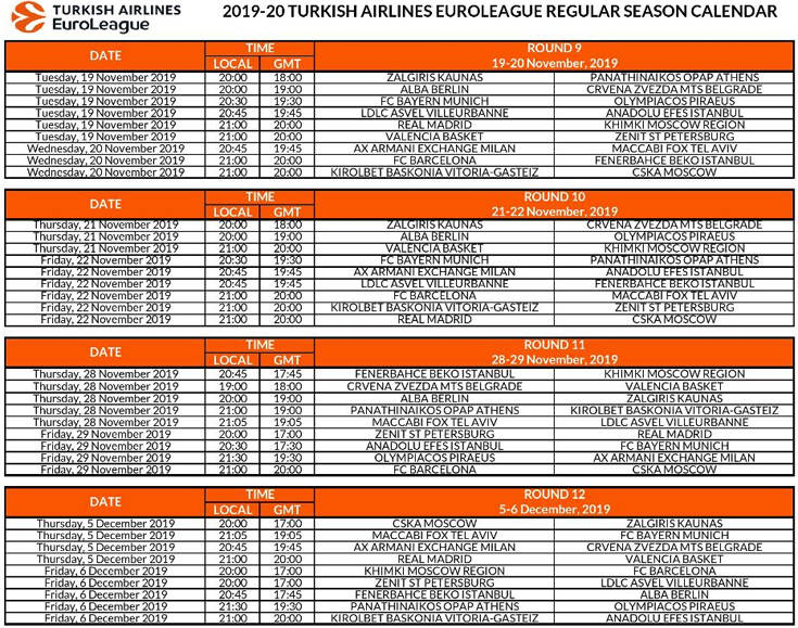 Euroleague: Όλο το πρόγραμμα της κανονικής διάρκειας
