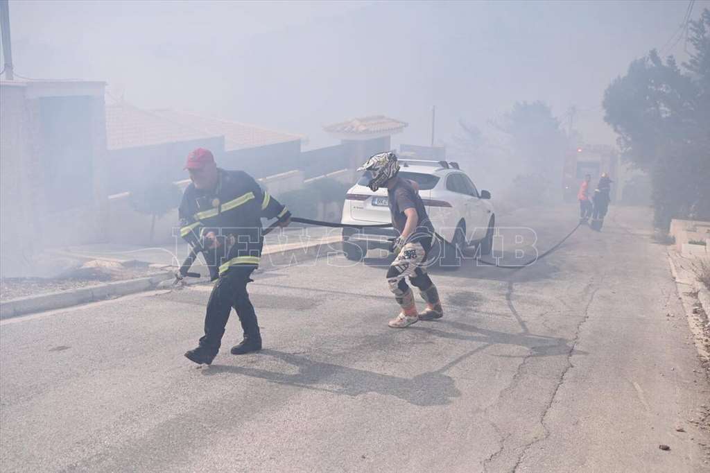 Σύμφωνα με το ρεπορτάζ του Newsbomb.gr οι φλόγες έφτασαν ήδη στο πρώτο σπίτι.