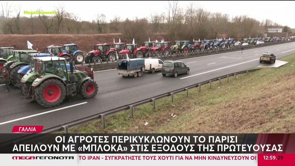 Οι κινητοποιήσεις των αγροτών συνεχίζονται και στη Γαλλία, οι οποίες μάλιστα εντείνονται με μπλόκα γύρω από το Παρίσι.
