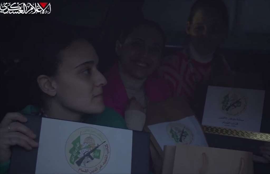 Τρομοκράτες της Χαμάς έδωσαν στις 3 γυναίκες μία σακούλα με «δώρα και αναμνηστικά» από την αιχμαλωσία τους, σύμφωνα με την Jerusalem Post. Αυτή η σακούλα περιλάμβανε φωτογραφίες τους από την αιχμαλωσία τους, έναν χάρτη της Γάζας και «πιστοποιητικά απελευθέρωσης». Τα πιστοποιητικά έγραφαν «απόφαση απελευθέρωσης», για να δώσουν το σήμα πως η κατάπαυση του πυρός είναι γεγονός.