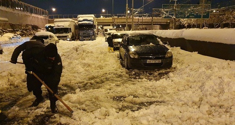 – Έξοδος Κηφισίας (11): Οκτώ οχήματα με 34 άτομα και δύο μηχανήματα (1 φορτωτής γαιών, 1 ισοπεδωτής γαιών), με έργο τον απεγκλωβισμό οχημάτων και τον εκχιονισμό Αττικής Οδού. Έχει αποδεσμευθεί ένα όχημα με 4 άτομα.