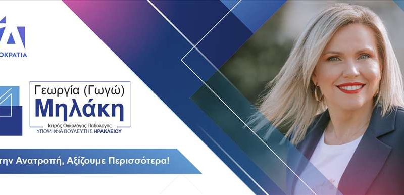 Την υποψηφιότητά της με τη Νέα Δημοκρατία στο Ηράκλειο, στις επερχόμενες εθνικές στο ψηφοδέλτιο της Νέας Δημοκρατίας, ανακοίνωσε με μια δυναμική ανάρτηση έκπληξη, στην προσωπική σελίδα της η Ιατρός και Γραμματέας του Περιφερειακού Συμβουλίου Κρήτης Γεωργία Μηλάκη.