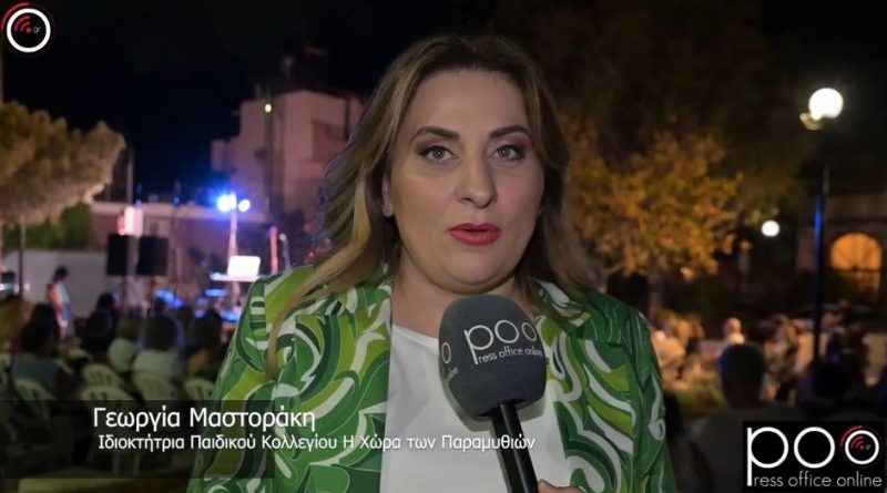 Του εύχομαι καλή επιτυχία και πάντα η χώρα των παραμυθιών, το παιδικό κολέγιο και εγώ προσωπικά θα είμαι κοντά τους για να τους στηρίζω όλες αυτές τις δράσεις, τονίζει χαρακτηριστικά η κ. Γεωργία Μαστοράκη.