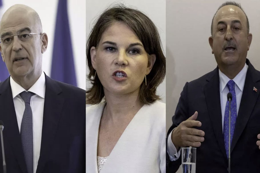 Ηχηρά μηνύματα στην Άγκυρα έστειλαν την Παρασκευή Γερμανία και Γαλλία μέσω των υπουργών εξωτερικών τους. Η Γερμανίδα υπουργός Εξωτερικών Αναλένα Μπέρμποκ που αρχικά συναντήθηκε με τον Κυριάκο Μητσοτάκη και τον Νίκο Δένδια στην Αθήνα πήρε σαφή θέση για την κυριαρχία των ελληνικών νησιών και συζήτησε με τον Έλληνα πρωθυπουργός και τον ομολογό της για κρίσιμα ζητήματα που αφορούν τις διμερείς σχέσεις, την ενεργειακή κρίση αλλά και την τουρκική προκλητικότητα. Λίγες ώρες αργότερα ταξίδεψε στην Κωνσταντινούπολη όπου είχε μία τεταμένη ανταλλαγή απόψεων με τον Τούρκο ομόλογό της Μεβλούτ Τσαβούσογλου.