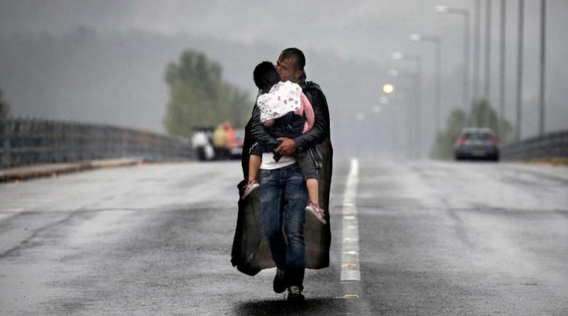 Είναι μια από τις πιο χαρακτηριστικές φωτογραφίες της προσφυγικής κρίσης, μια φωτογραφία που κλείνει μέσα της δεκάδες συναισθήματα. Ένας Σύρος πατέρας κρατά στην αγκαλιά το παιδί του και περπατάει στην γέφυρα της Ειδομένης, διασχίζοντας τα σύνορα Ελλάδας – Σκοπίων, τον Σεπτέμβριο του 2015. Βρέχει και το μόνο που τον καλύπτει είναι μια πλαστική σακούλα σκουπιδιών, που κρέμεται στους ώμους του σαν κάπα. Δεν κουβαλάει πράγματα. Έχει μόνο αγκαλιά το κοριτσάκι του και το φιλά προστατευτικά κοιτάζοντας προς την ελευθερία.