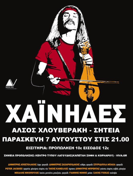 Την Παρασκευή 7 Αυγούστου οι σπουδαιοι Χαΐνηδες θα δώσουν μια μοναδική συναυλία στην Σητεία, στο Άλσος Χλουβεράκη. στις 21:00
