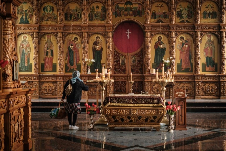 Τίποτα δε θύμιζε τη χαρμόσυνη πρωινή λειτουργία του Πάσχα άλλων ετών. Στις εκκλησίες του Κιέβου πρόσωπα θλιμμένα και μάτια δακρυσμένα.