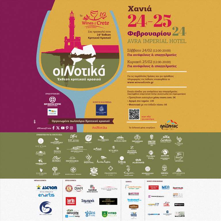Οι οινοποιοί της Κρήτης για 16η ΧΡΟΝΙΑ ετοιμάζονται να υποδεχτούν τους φίλους του Κρητικού Αμπελώνα στην Έκθεση «ΟιΝοτικά» στα Χανιά, με την συνδιοργάνωση της Περιφέρειας Κρήτης – Περιφερειακή Ενότητα Χανίων.