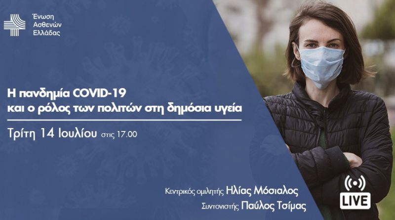 Η Ένωση Ασθενών Ελλάδας διοργανώνει μία διαδικτυακή ανοιχτή συζήτηση για την πανδημία COVID-19 και το ρόλο των πολιτών στην προαγωγή της δημόσιας υγείας.