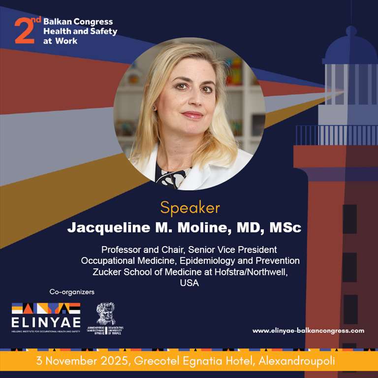 Μια από τις σημαντικότερες προσωπικότητες της επαγγελματικής ιατρικής στις Ηνωμένες Πολιτείες, η Καθηγήτρια Jacqueline M. Moline, θα είναι κεντρική ομιλήτρια στο 2ο Διαβαλκανικό Συνέδριο για την Υγεία και την Ασφάλεια στην Εργασία, που διοργανώνει το ΕΛ.ΙΝ.Υ.Α.Ε. σε συνεργασία με το Δημοκρίτειο Πανεπιστήμιο Θράκης, στις 3 Νοεμβρίου 2025, στην Αλεξανδρούπολη.